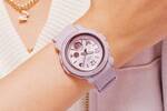 BABY-G“幸せを運ぶ蝶”モチーフのパステルカラー腕時計、パステルラベンダーの花色ウォッチ