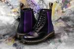 ドクターマーチン×ニードルズ「1460」8ホールブーツ、パープルの“蝶”モチーフ&ストライプ