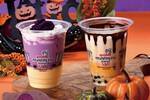 ムーミンスタンド限定ドリンク“むらさき芋プリン&えびすカボチャミルク”、ニョロニョロストロー付き