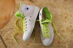コンバース「オールスター」新色、鮮やかなネオングリーン×オフホワイトの日本製シューズ