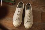 コンバース×メルローズの「オールスター アール」白スニーカー、真鍮ハトメ&ネイビーの差し色で