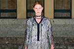 マメ クロゴウチ“丹頂が飛び立つ”新作ニットドレス、グラデカラーの空模様×洗練Iラインで