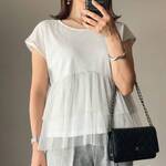 ほんのりラメ入り♡【しまむら】高見え間違いなしの「チュールドッキングトップス」