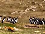 ペンギンの群れが鉢合わせ すると混乱した1羽が? 「笑った」「うっかりさんがいる」
