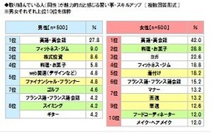 異性から魅力的だと思われる習い事ランキング、女性は料理、男性は?