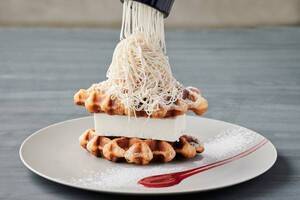 ザ ストリングス 表参道の冬限定“目の前で仕上げる”「ホワイトモンブラン クロッフル」