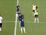 前代未聞のハプニング サッカーの試合中に飛んできた『珍客』が選手の頭に着地