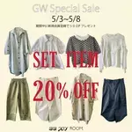 【GW・SALE VOL.2】5/3~5/8まで6日間限定!SHOP内セットアップアイテムが20%OFF