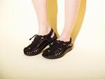 X-girl×キーンのコラボサンダル「UNEEK」- オールブラックに両ブランドロゴの総柄ソール