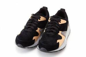 エミとルコック スポルティフのコラボスニーカー、“上品スエード”アッパー×ボリュームソール