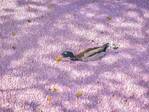 全身に桜をつけて大量の花筏をかき分けるカモの写真に反響 【全4枚】