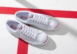 コンバースの新作スニーカー「ジャックパーセル クラシックス」白のシュリンクレザーに赤ひげライン