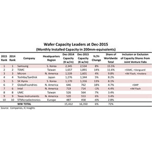 2015年の半導体生産能力世界トップはSamsung - IC Insights
