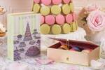 ラデュレ×オランピア ル タンの本型マカロンボックス、カラフルなマカロンやパティスリーが表紙に