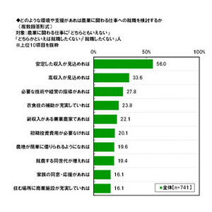 就農の意向を持つ学生は25%。実体験やテレビ番組から影響を受ける