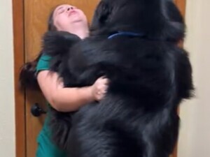 「毛皮のコートを着た人かと思った」 獣医師に抱きつく『子犬』がこちら