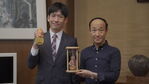 サハラマラソンに挑戦する社員を支援するトライアンフの取り組み 大阪オフィスの拠点長 柾木が寝屋川市への表敬訪問し、完走を報告