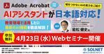 <4/23無料ウェビナー>Acrobat AIアシスタントがついに日本語対応!誤った情報を防ぐ仕組みで、嘘をつかないAIの実力をご紹介!