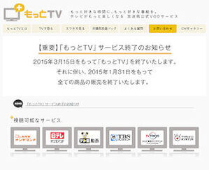 「もっとTV」が2015年3月15日にサービス終了