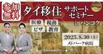 タイ移住サポートセミナー in バンコク ~医療・税務・ビザ・教育~ タイ長期滞在ビザのタイランドプリビレッジ公式無料セミナー 8月30日(土)開催決定!