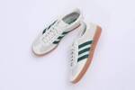 エミのアディダス オリジナルス別注スニーカー、オフホワイト×グリーンの上品スエードアッパー