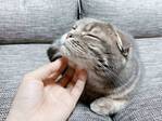 アゴをなでられ、気持ちよさそうな猫 急に手を止めると? 「可愛すぎる」「表情のギャップ」