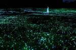 光り輝く一面のネモフィラ「チームラボ ボタニカルガーデン 大阪」長居植物園で、光と音色が伝播